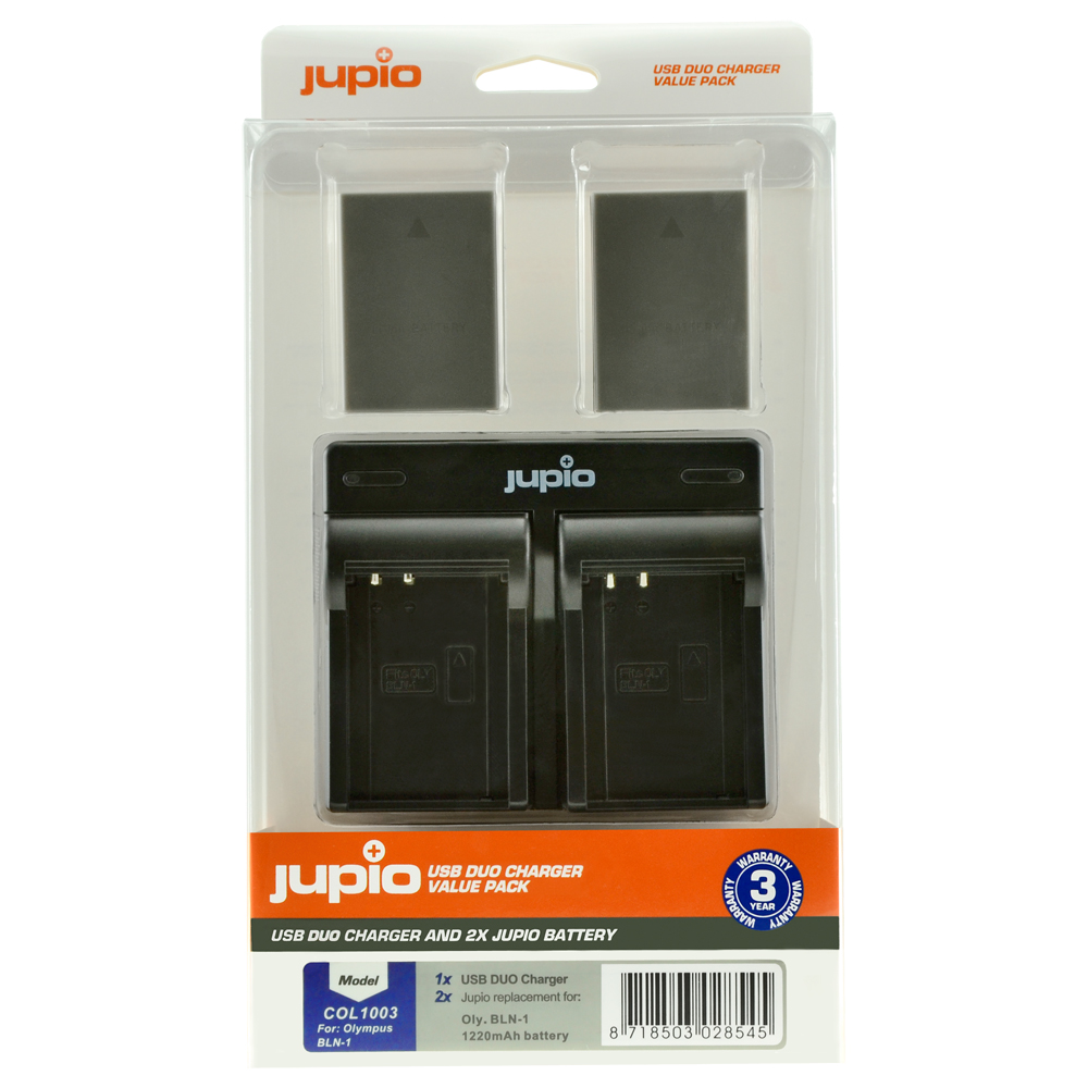 Jupio voordeelpakket, bestaande uit 2 Jupio camera accu’s en een lichtgewicht USB dubbellader, welke naar keuze is aan te sluiten op een powerbank, autolader, USB poort of lichtnet. Inclusief USB kabel.
